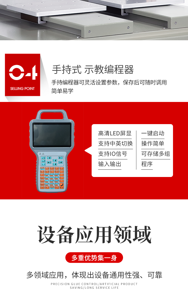 4. 機臺上帶有對針頭的控制按鍵,不需外接教導器,比同類產品調試 更加方便。