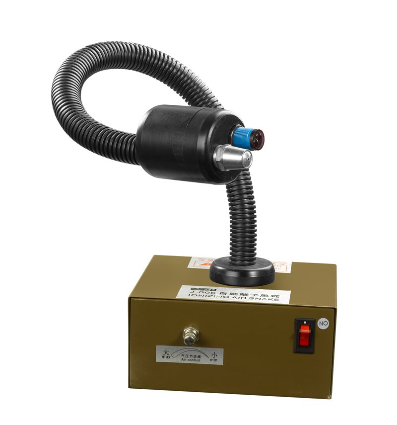 智能離子風蛇是一種坐立式靜電消除器,可手動將蛇管變成風蛇指向目標方向,讓離子氣流離子風蛇可產生大量帶有正負電荷的氣團,被壓縮空氣高速吹出,可以將物體所帶的電荷中和掉,當物體表面帶有正電荷時,它會吸入氣流中的負電荷,反之亦然。從而使物體表面的靜電被中和,從而消除靜電/高速壓縮氣還可以將物體上靜電吸引的灰塵吹走。